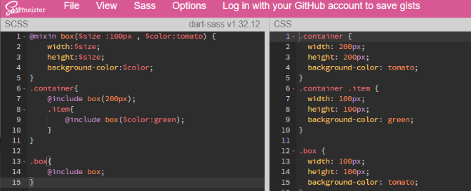 뒤에 javascript 함수처럼 @mixin box(변수)를 넣고